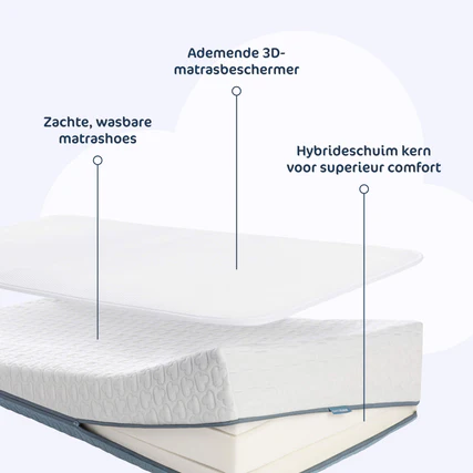 Voor ouders die kiezen voor duurzame veiligheid, premium comfort en verlichting van babykwaaltjes. Een innovatieve babymatras met vlak én hellend slaapoppervlak: bestrijdt veelvoorkomende kwaaltjes voor jarenlang zorgeloos slaapplezier.