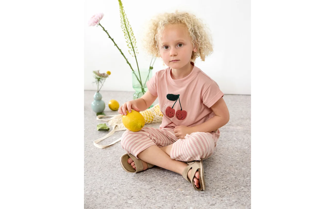 De geribde kinderlegging maakt de outfit tot een eyecatcher!